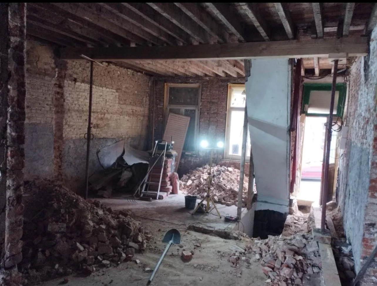 Rénovation complète d'une maison insalubre — Ouverture de murs porteurs, traitement humidité, chape, carrelage, isolation, électricité et peinture
